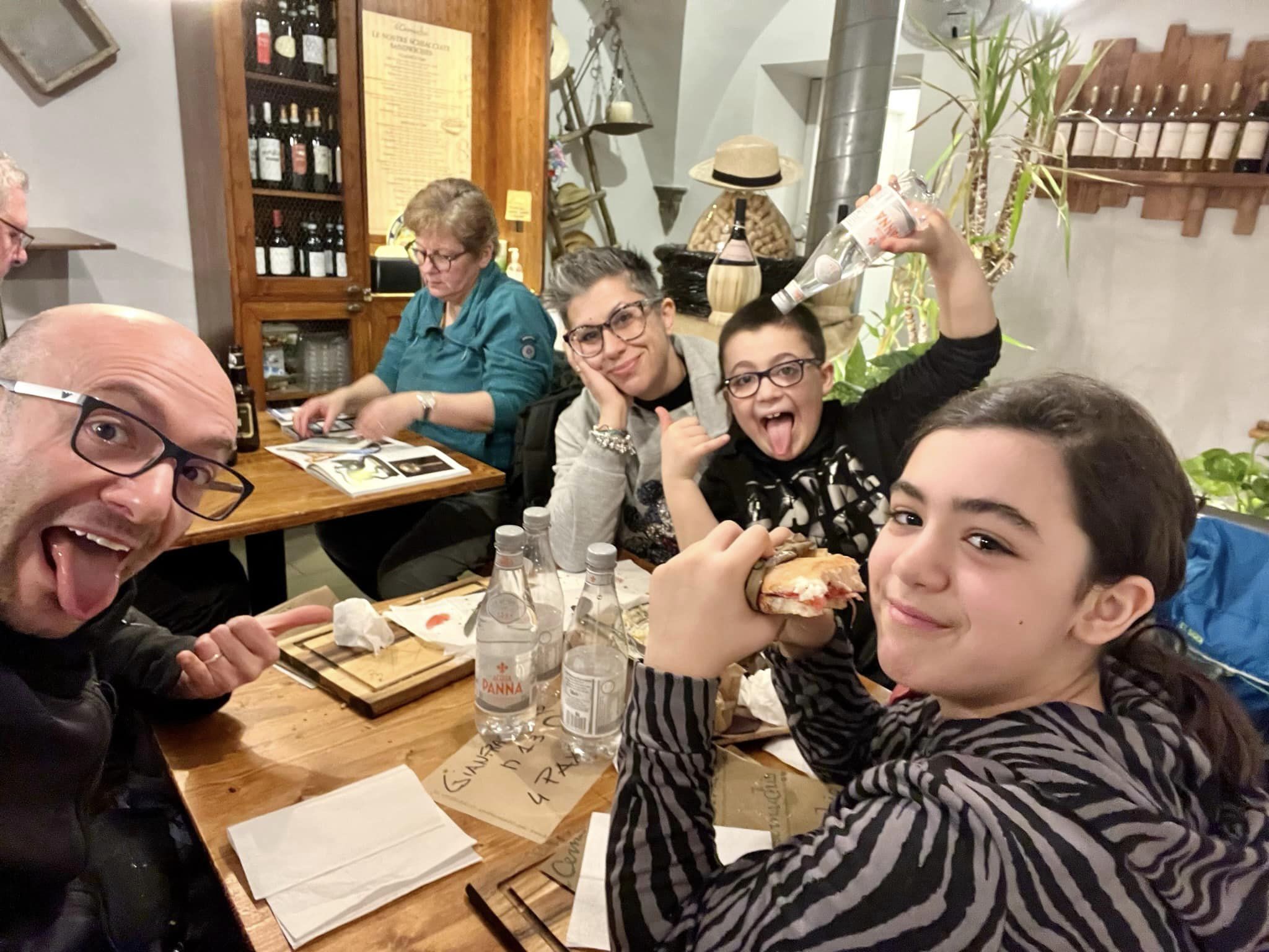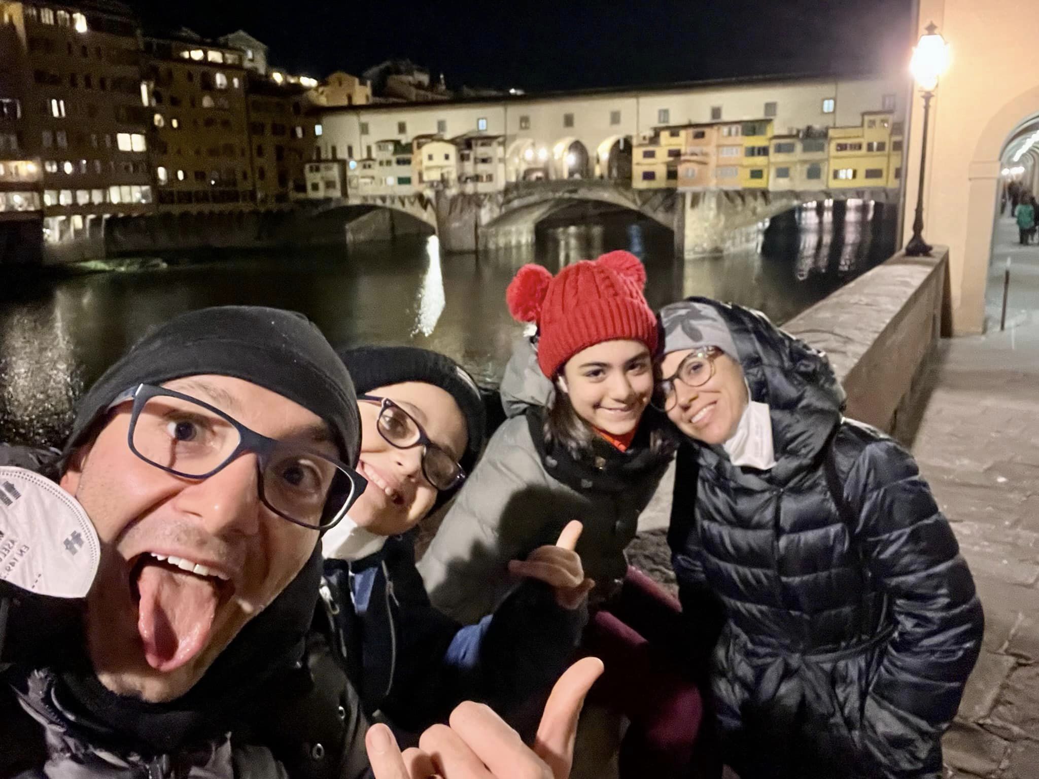di nuovo in giro… pranzo con schiacciata fiorentina… foto di rito a Ponte Vecchio e via in stazione per rientrare. Dopo tutto il lunedì si va a scuola