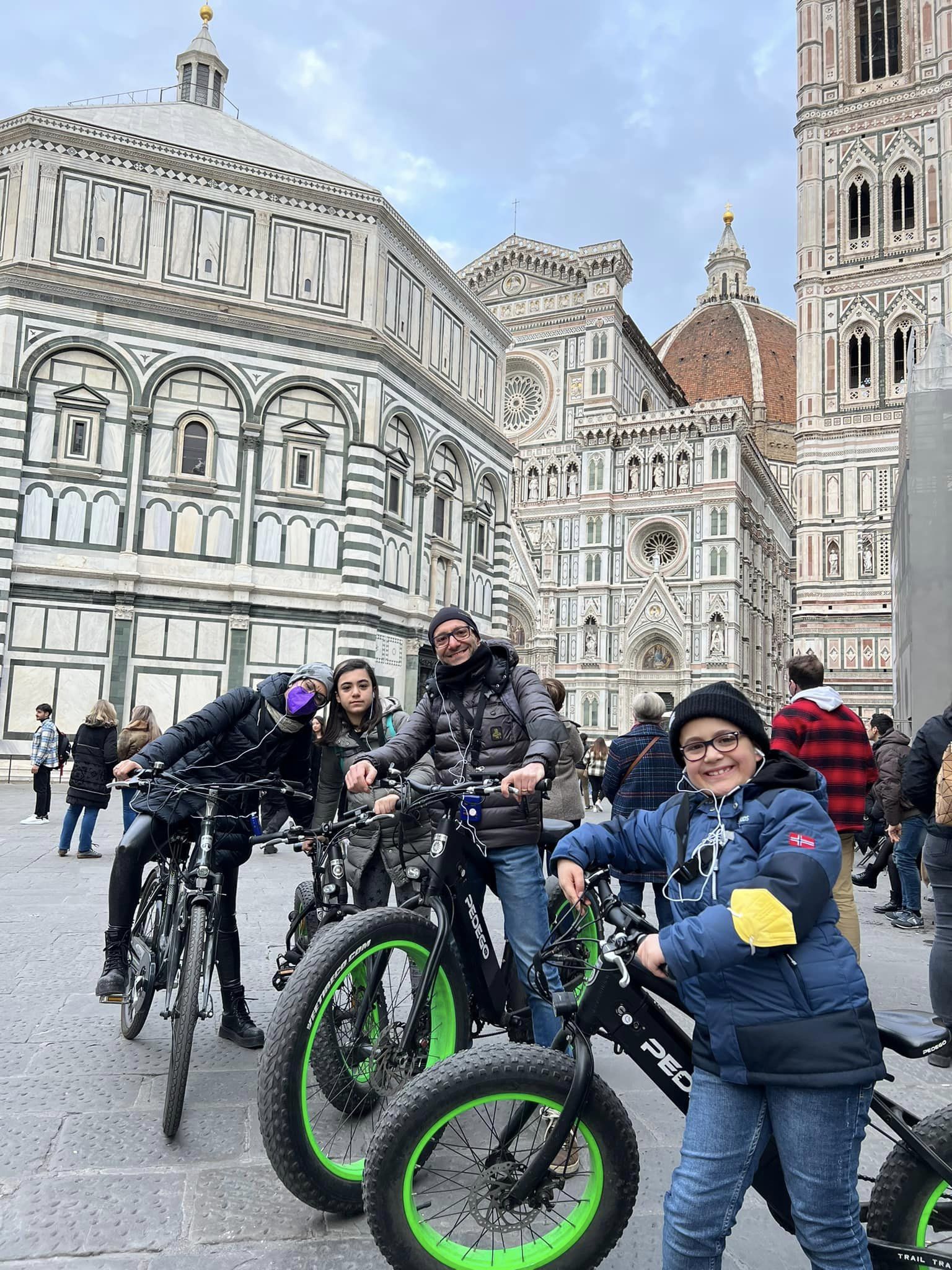 La mattina successiva dopo un bel giretto a piedi, siamo saliti sul Campanile di Giotto, visitato la Cattedrale di Santa Maria del Fiore (il Duomo) e affittato e-bike. Un bel giro con guida che ci ha portato in luoghi famosi ma anche in angoli più nascosti. Saliti fino al Piazzale Michelangelo dove ci siamo riposati e abbiamo goduto di una vista spettacolare su tutta Firenze