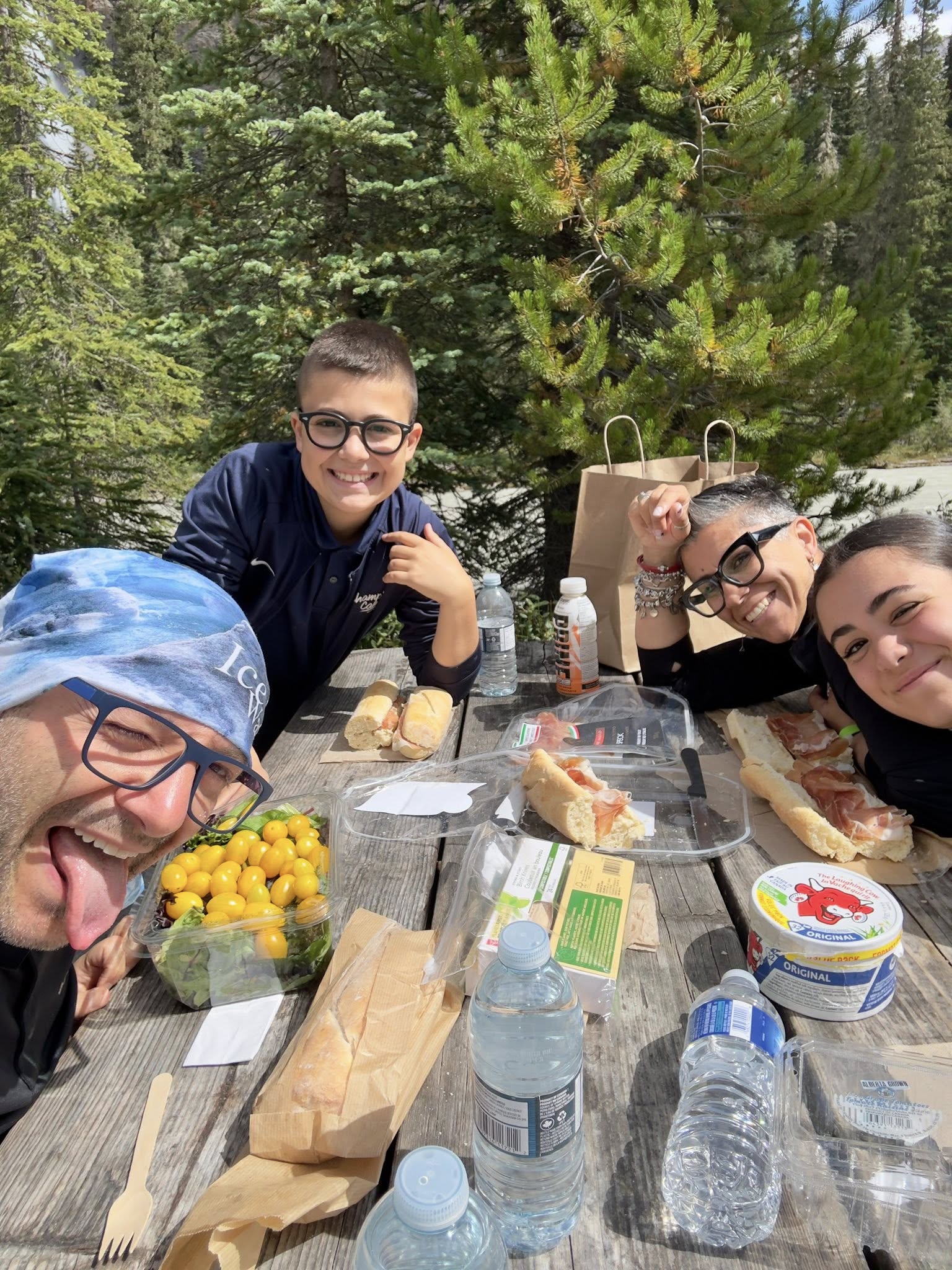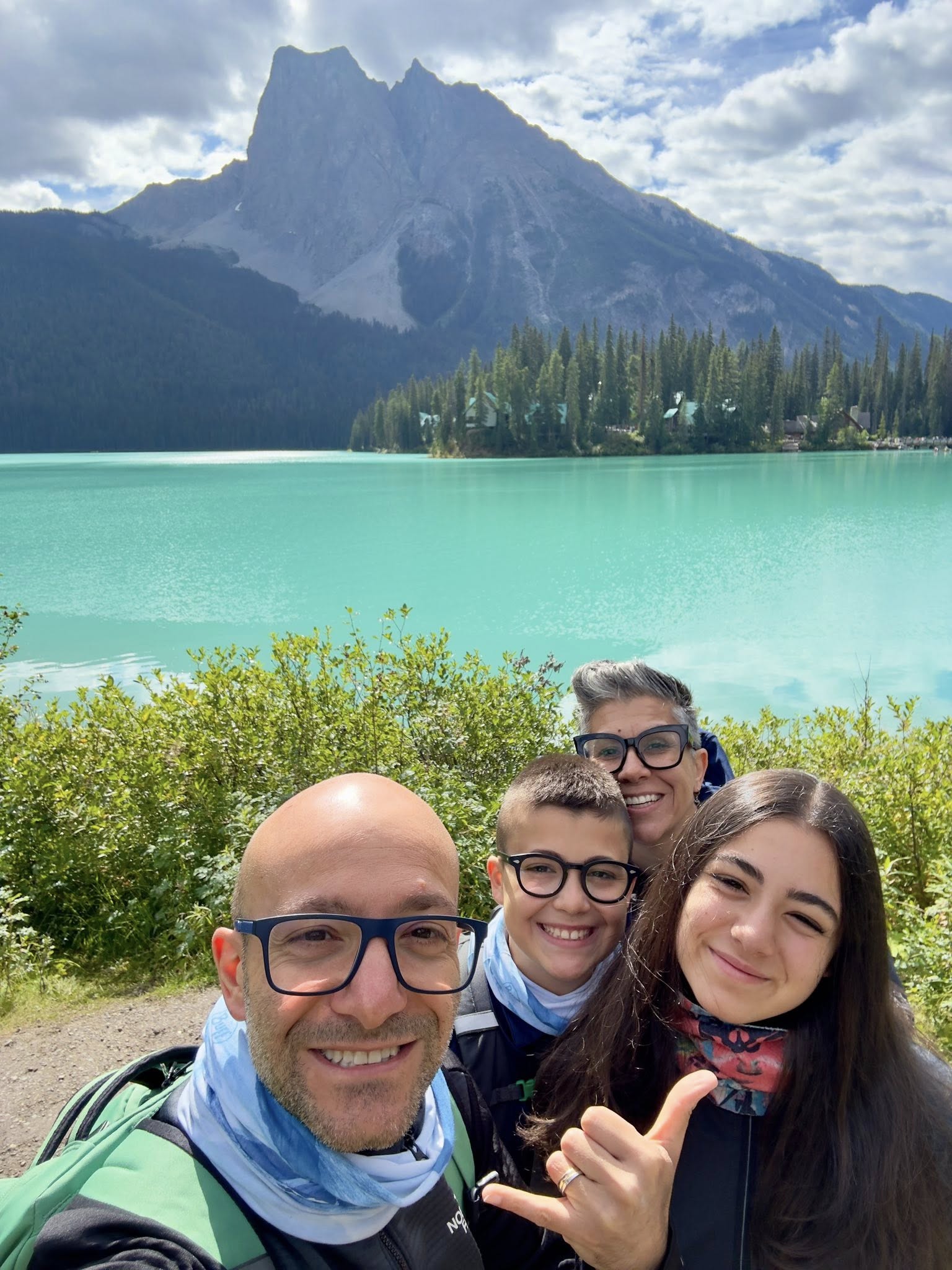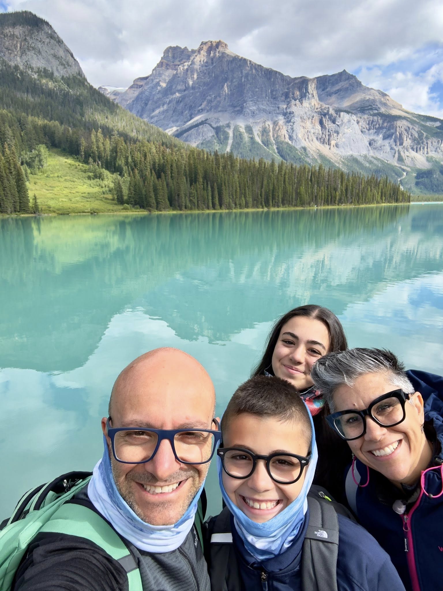 The family wakes up, breakfasts, and we set off for a couple of hikes… today's first stop is at Emerald Lake. The hike is a loop around the lake, but it's made really difficult by the mud we've encountered due to the overnight rain. But we finish it and are rewarded with breathtaking views. The most beautiful glacial lake I've ever seen!!! Beautiful and with spectacular sunshine