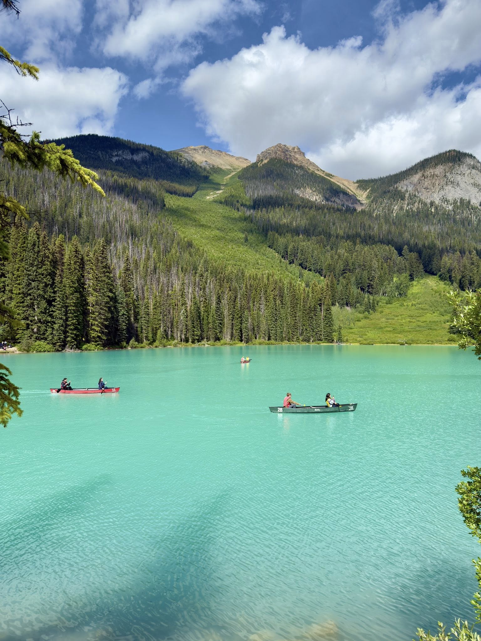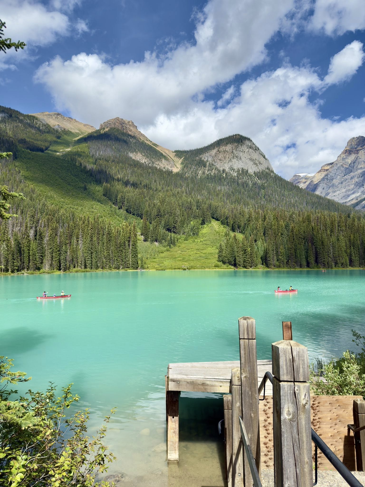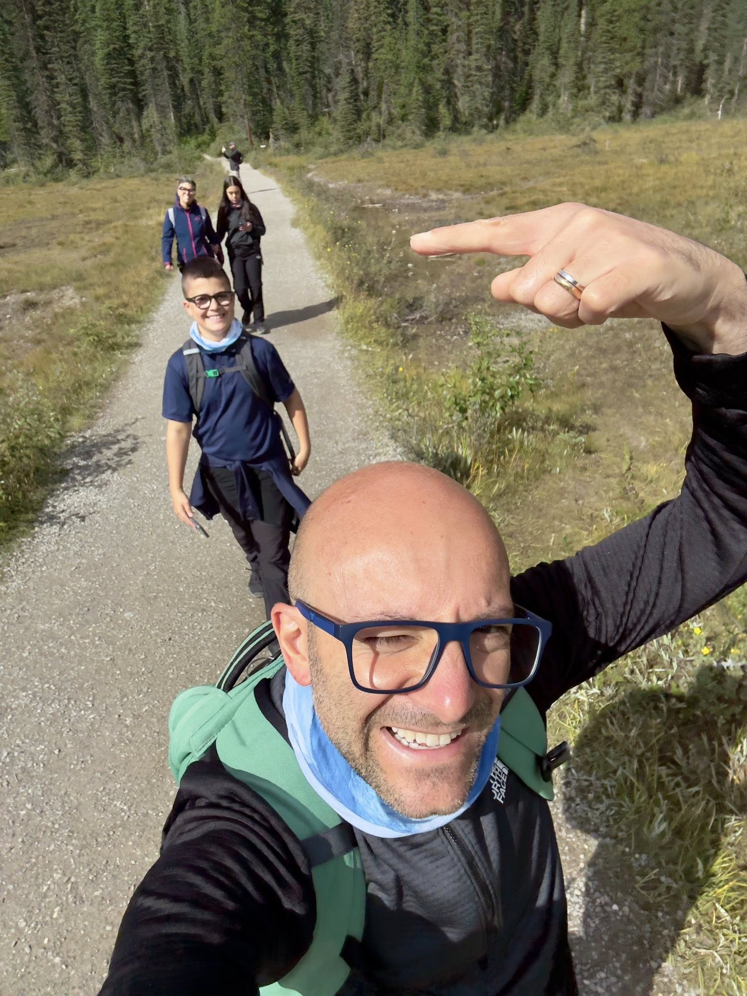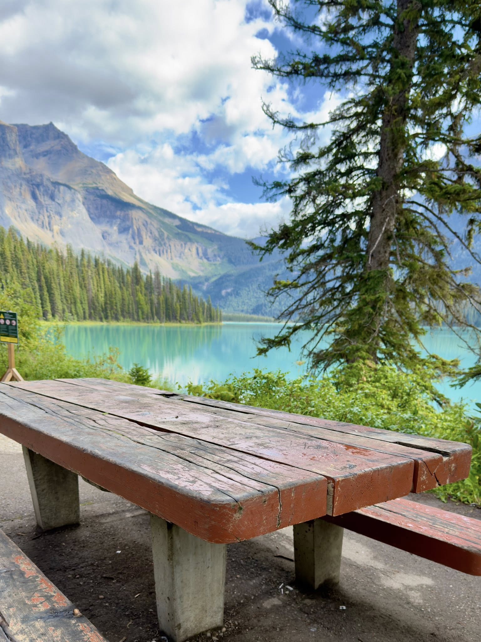 The family wakes up, breakfasts, and we set off for a couple of hikes… today's first stop is at Emerald Lake. The hike is a loop around the lake, but it's made really difficult by the mud we've encountered due to the overnight rain. But we finish it and are rewarded with breathtaking views. The most beautiful glacial lake I've ever seen!!! Beautiful and with spectacular sunshine