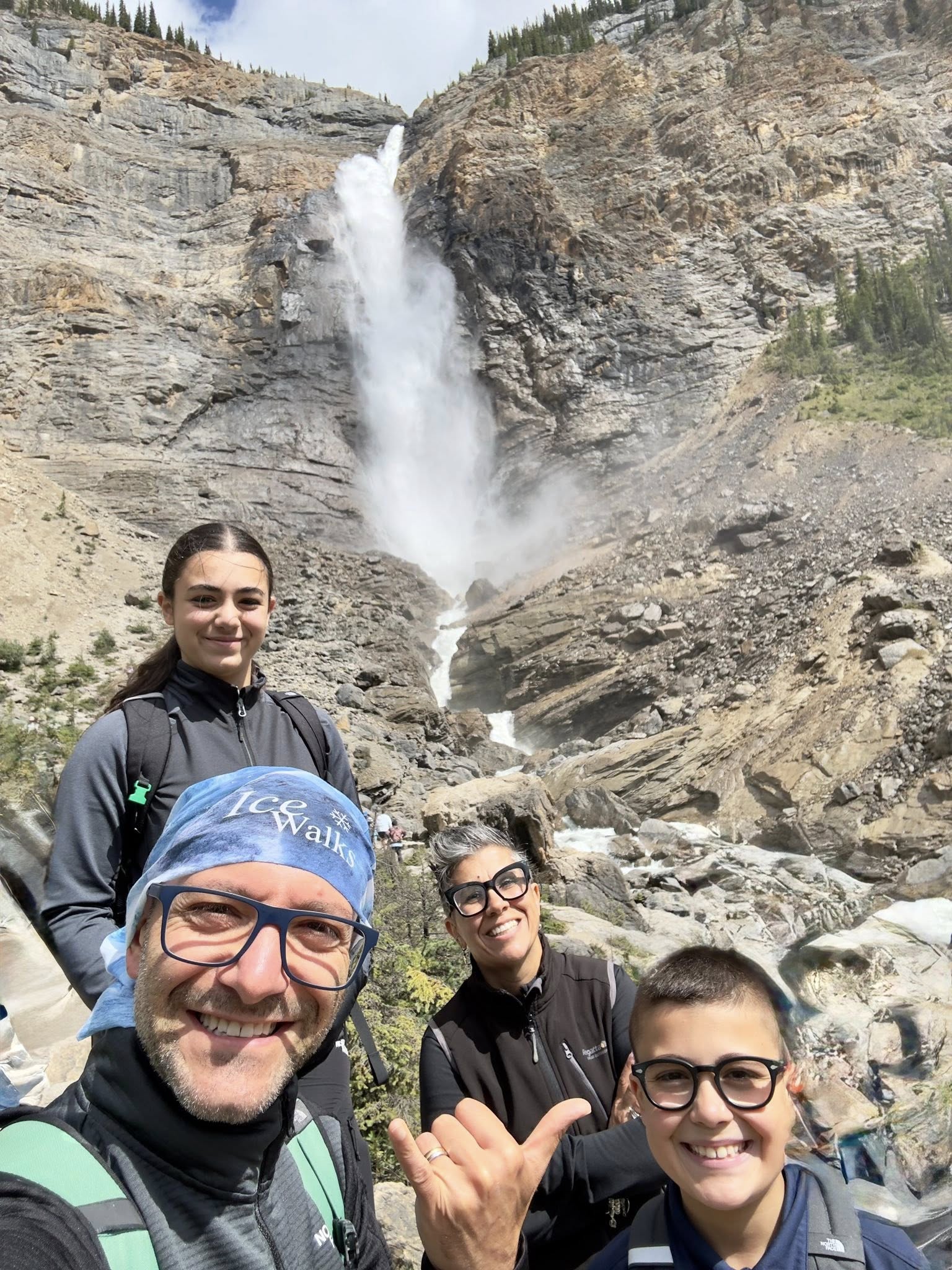 . We continue toward today's second destination, without neglecting any unscheduled stops... this place has a thousand things to see. We stop to observe the Lower Spiral Tunnel, a series of tunnels carved into the mountain, truly spiral-shaped for the passage of trains... truly fascinating. We continue toward the second half of today, the Takakkawa Falls, the largest waterfalls in the Rocky Mountains and the second-highest in Canada, at 373 meters.