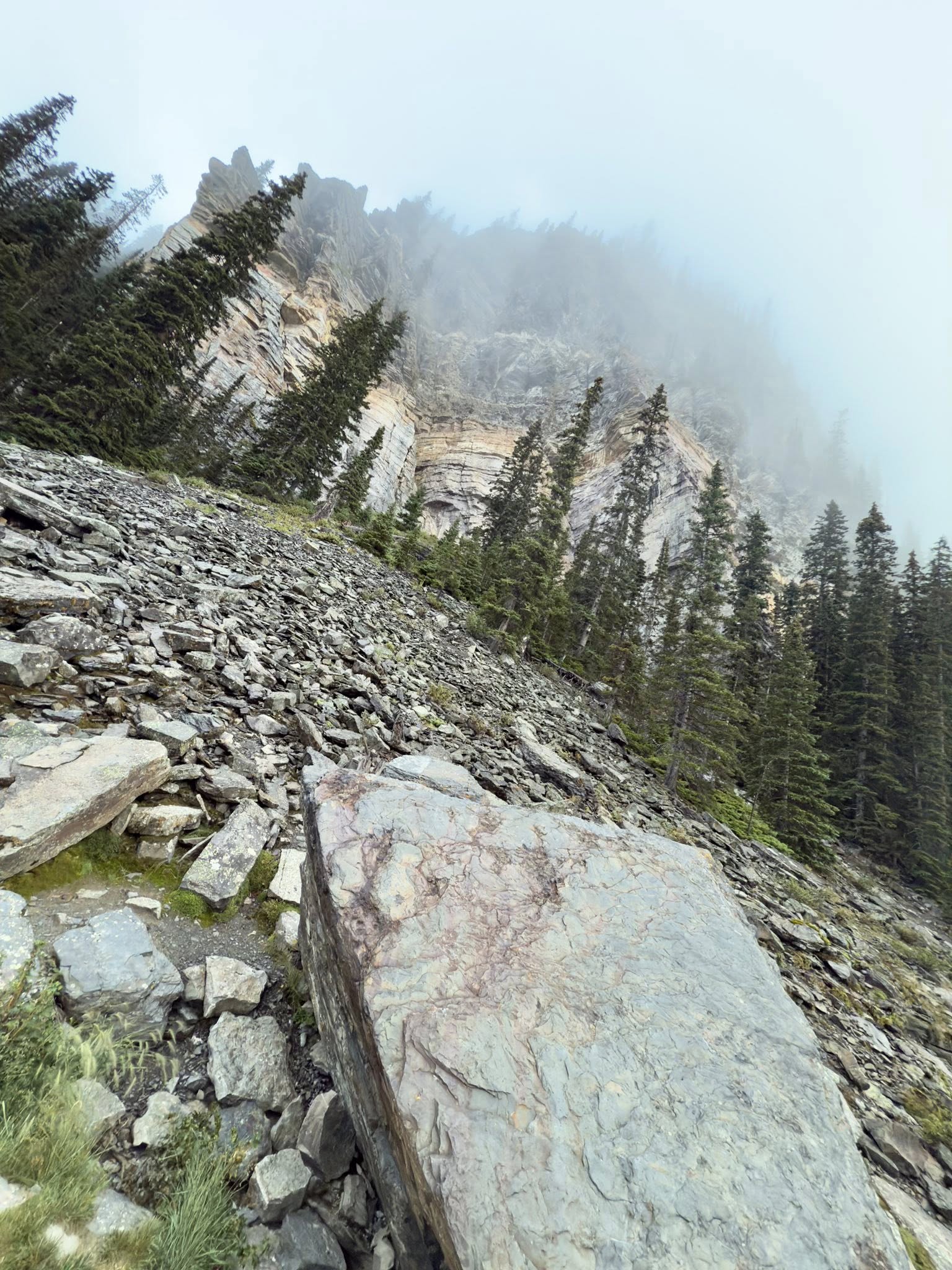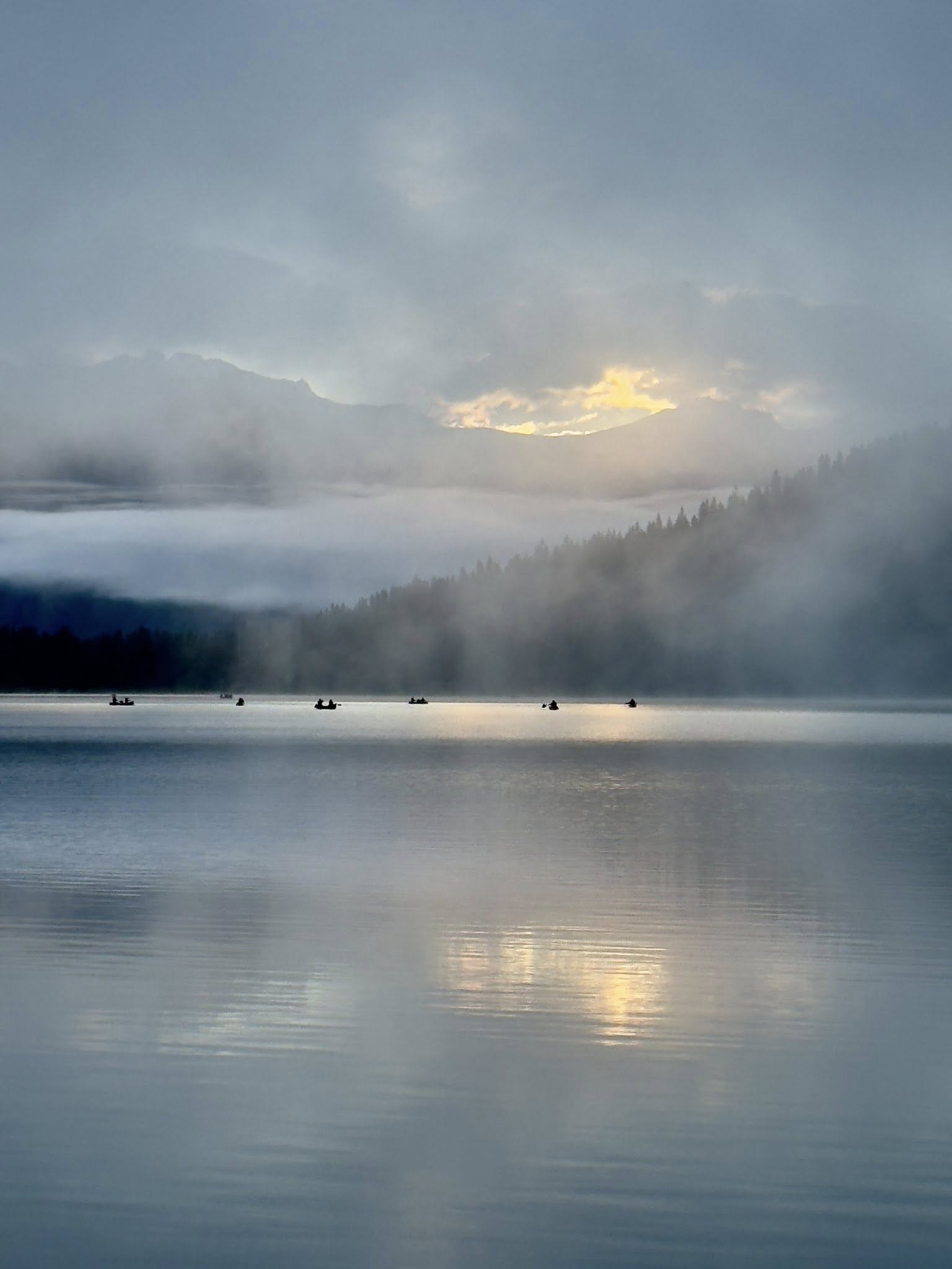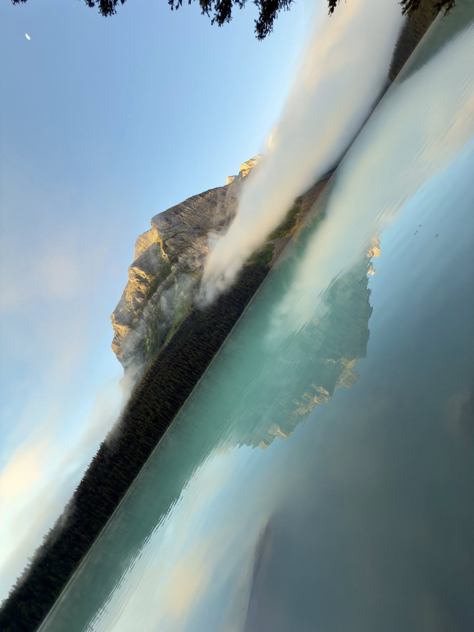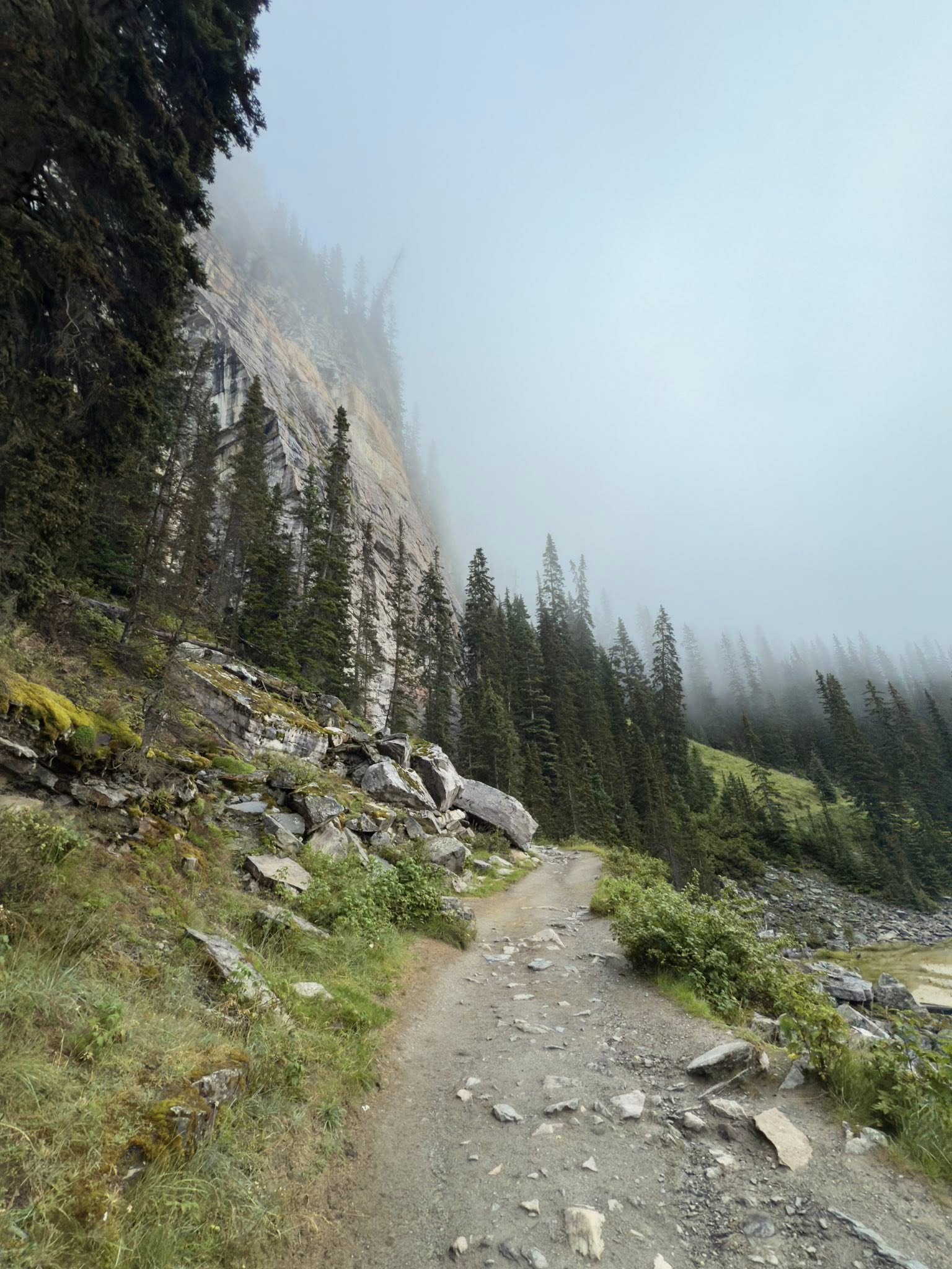 Lake Louise… 5:30 am… 2 degrees… thick fog and darkness… but after so many solitary sunrises, I couldn't say this to myself. At 5:45 am, the Lake Louise parking lot was practically full, with countless people waiting for sunrise at the edge of the lake. I instead hiked to the base of the glacier, which allowed me to avoid encountering anyone and, above all, to get better views. It's a shame about the fog, but this sunrise was also quite charming.