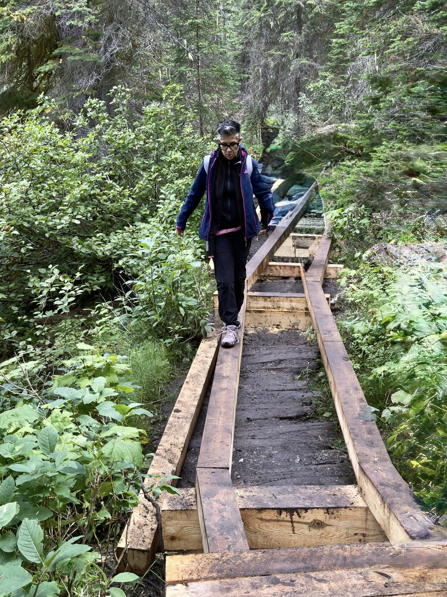 Sveglia alla family, colazione e si parte per un paio di trekking… oggi la prima tappa è al lago glaciale Emerald Lake. Il trekking è in loop intorno al lago, ma reso davvero difficile per via del tanto fango trovato per via della pioggia notturna. Ma lo portiamo a termine e veniamo premiati da spettacolari viste mozzafiato. Il più bel lago glaciale in assoluto visto fin ora!!! Bellissimo e con il sole spettacolare