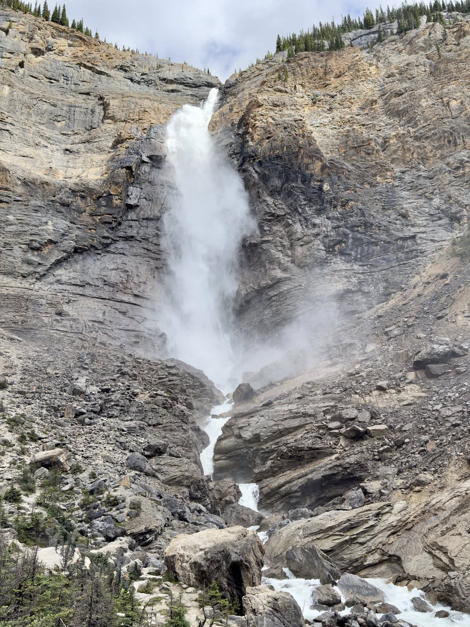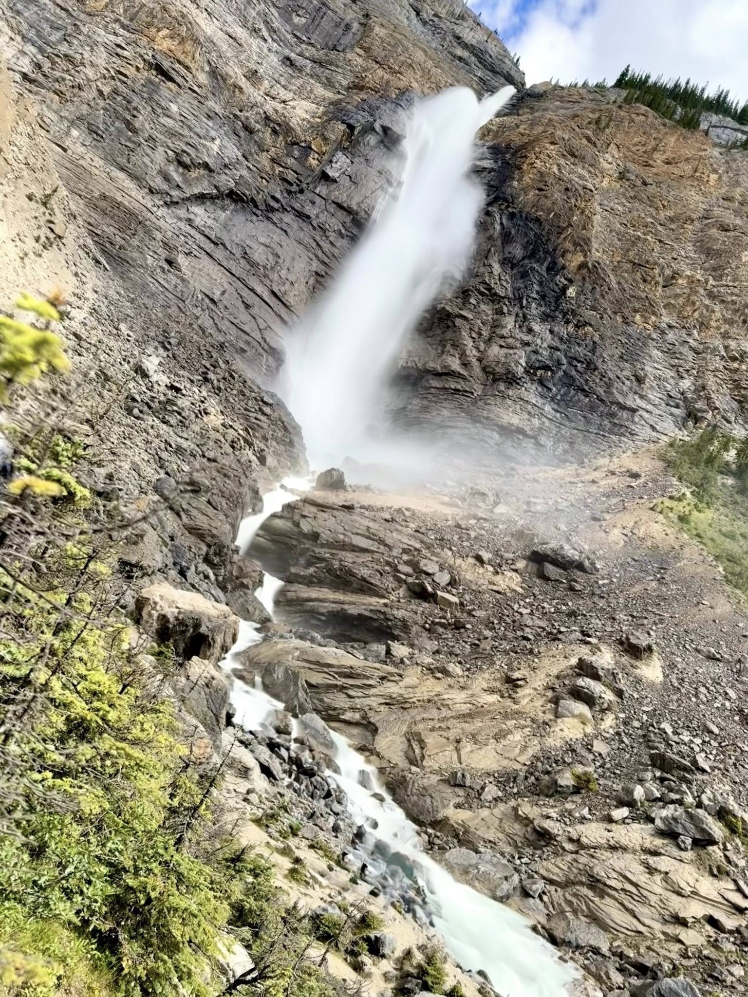 . Proseguiamo verso la seconda meta di oggi senza però tralasciare soste anche non in programma…questo posto ha mille cose da vedere. Ci fermiamo ad osservare il Lower Spiral Tunnel , una serie di tunnel scavati nella montagna davvero fatti a spirale per il passaggio dei treni… davvero affascinante. Proseguiamo così verso la seconda meta di oggi, le Takakkaw Falls, le cascate più grandi del Rocky Mountain National Park e le seconde del Canada con ben 373 metri di altezza.