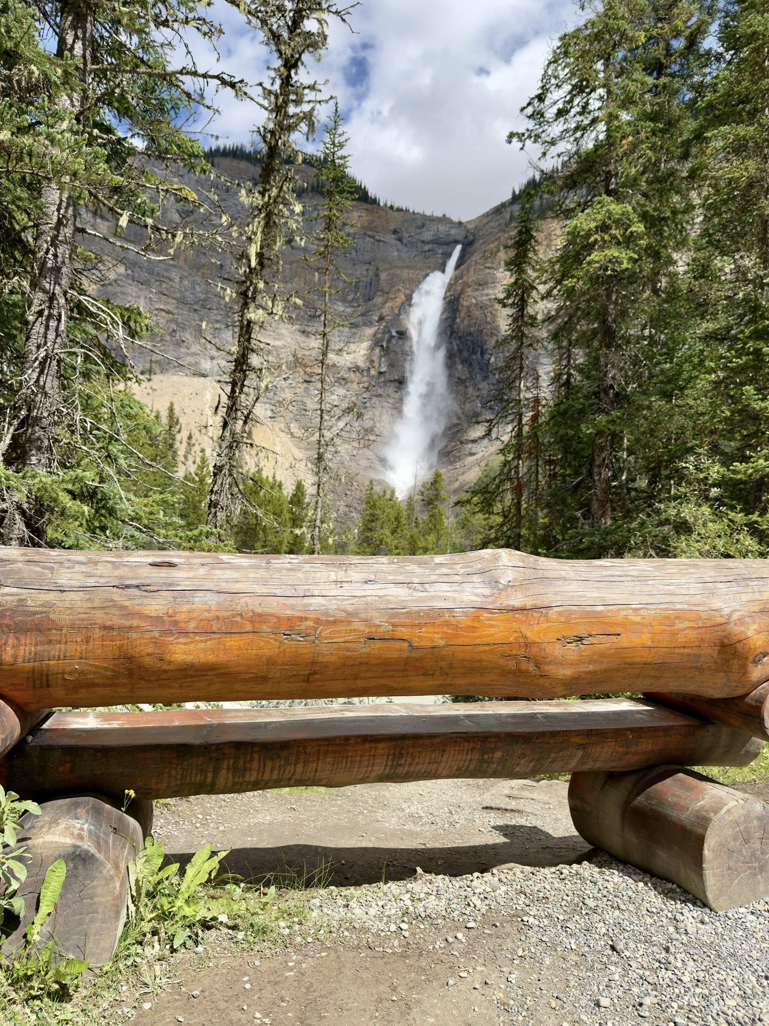 A picnic overlooking the waterfall, relaxation, and departure for Banff.